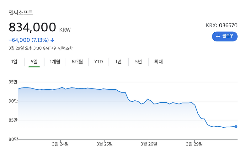 엔씨소프트 주가 하락 이유는 엔씨소프트 장기투자로써 아쉬움 린저씨
