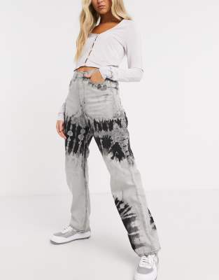 Weekday Rowe Organic Cotton Straight Leg Tie Dye Jeans In Grey Asos